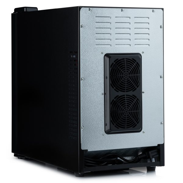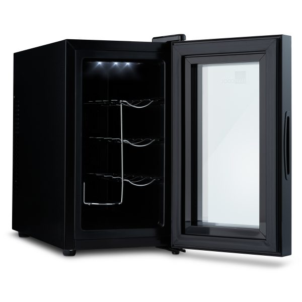 It is tastefully designed for modern living. It features an adjustable digital thermostat with a huge internal temperature range of 5 -18°C, perfect for all your favourite wines and drinks! This model measures [W] 265 x [D] 510 x [H] 475 mm with an internal storage capacity of 8 Bottles of wine and features an internal White LED light. Behind the tempered frameless glass door, there are removable internal chrome wire shelves for storage of all your assorted bottles etc.