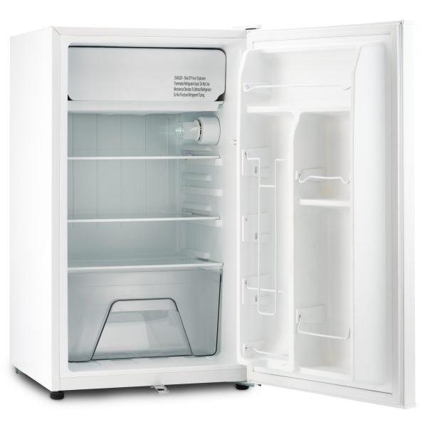 The storage capacity is 100 litre and comes with plenty of integrated storage features. There are 3 removable shelves inside to provide you configuration in storage according to your needs. The door includes 4 pockets with one of them designed specifically to hold all your canned drinks. There is also a chiller box to add extra cool to your contents.