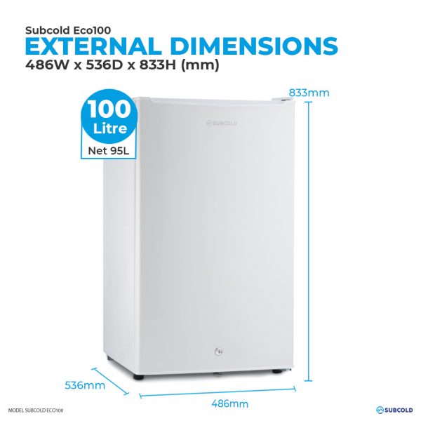 In summary, Subcold Eco100 is the perfect under-counter fridge for the entertainer. It is large enough to accommodate a variety of bottles and cans, and there’s even space for ice-cube trays, and its stylish design complements all entertainment areas. This modern fridge comes with a free full 1 Year warranty for your peace of mind!