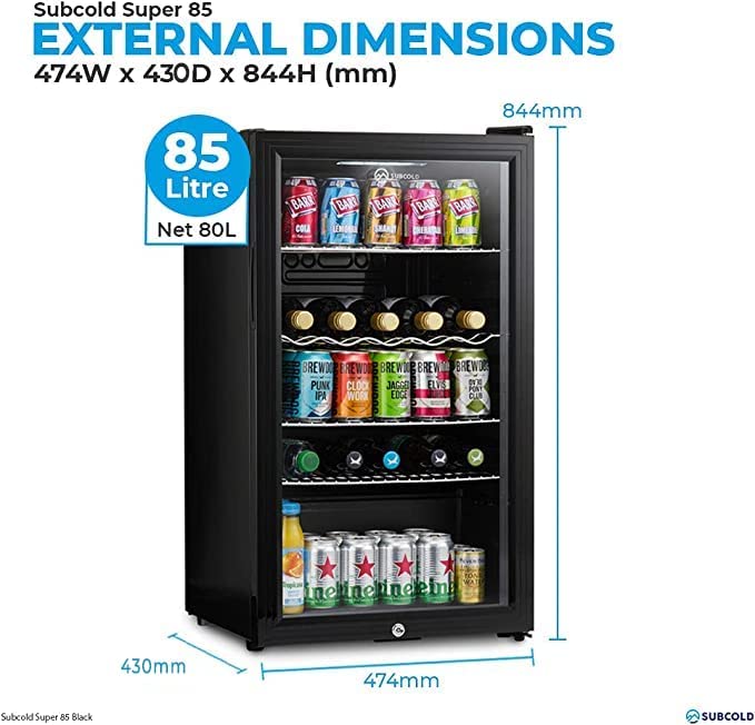 - Subcold Super 85 LED Black Beer Fridge