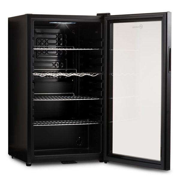 A brand new addition to the Subcold collection, the black Super 85 beer fridge has an impressive total capacity of 85 litres. It has a temperature range of 3°C to 18°C (+/- 2°C), and it is designed to accommodate up to 80 cans and 5 bottles of wine. Ideal for beers, soft drinks, craft brews, and even snacks, it is outfitted with four height-adjustable chrome wire shelves and it has a tempered glass door that allows you to see inside at a glance.